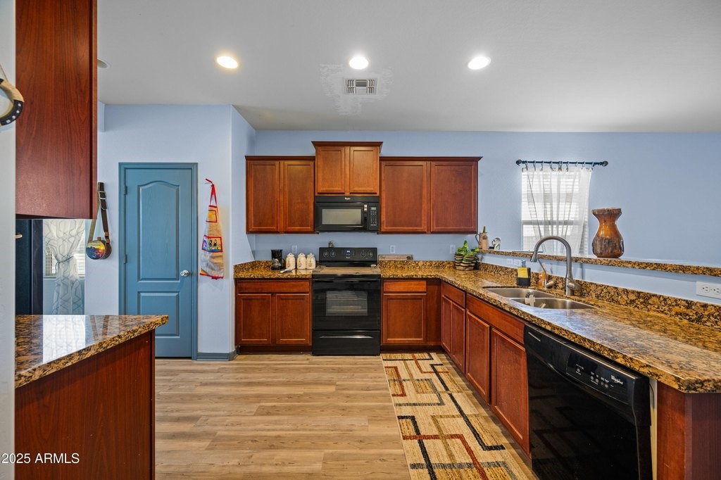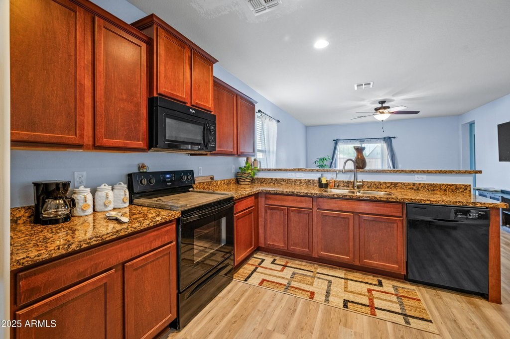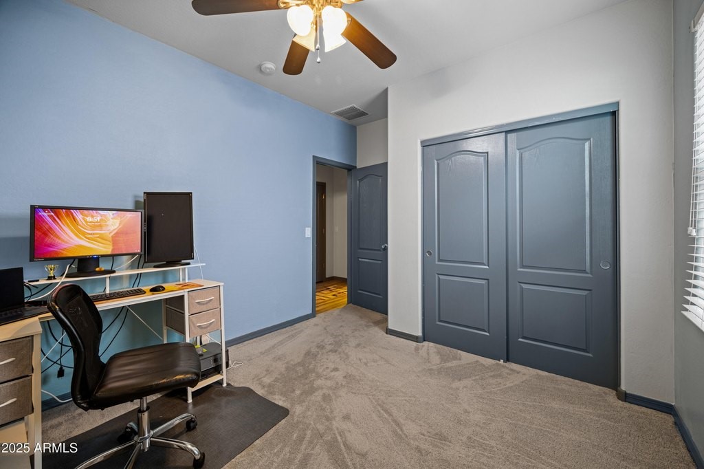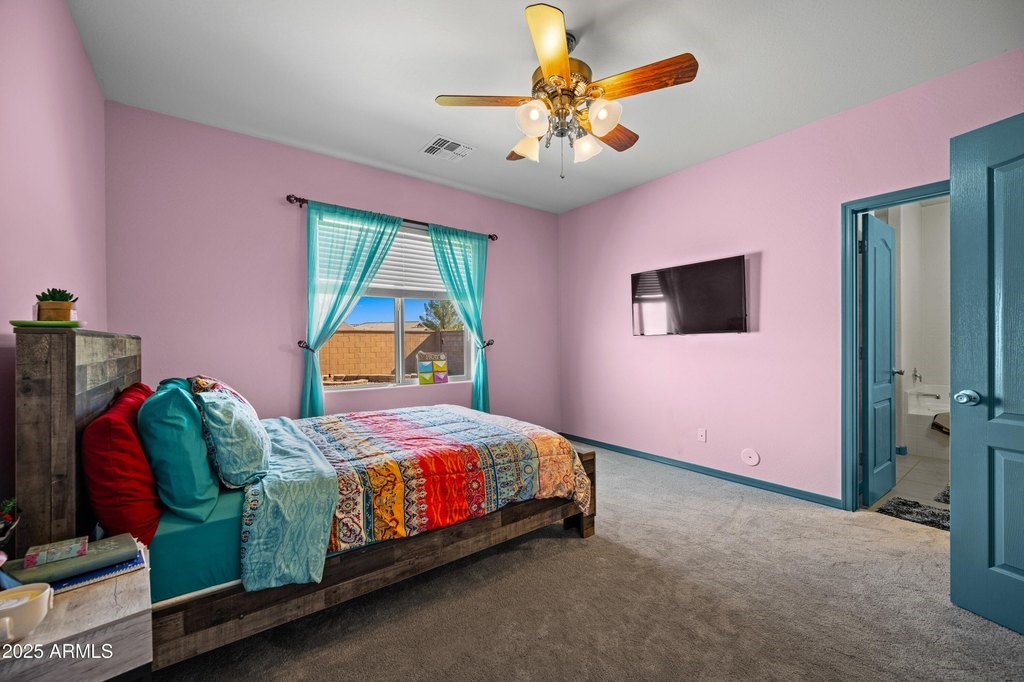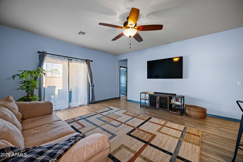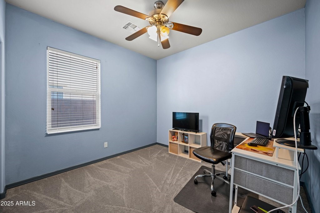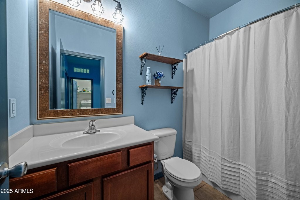This well-maintained 3-bedroom, 2-bath home in Maricopa is just a short walk to the community pool! The kitchen features granite countertops, black appliances, a breakfast bar, and plenty of cabinet space, along with a separate dining area. The spacious primary suite includes a private toilet room, separate shower and tub, and generous closet space. Inside, you'll find a mix of laminate tile, carpet, faux wood blinds, and ceiling fans throughout. The low-maintenance front and back yards make life easy. The backyard is perfect for relaxing or entertaining, with a covered patio, extended paver area, firepit, and artificial turf. All appliances are included, and the home has solar panelsgreat for keeping electric bills down. Conveniently located near schools, shopping and dining!